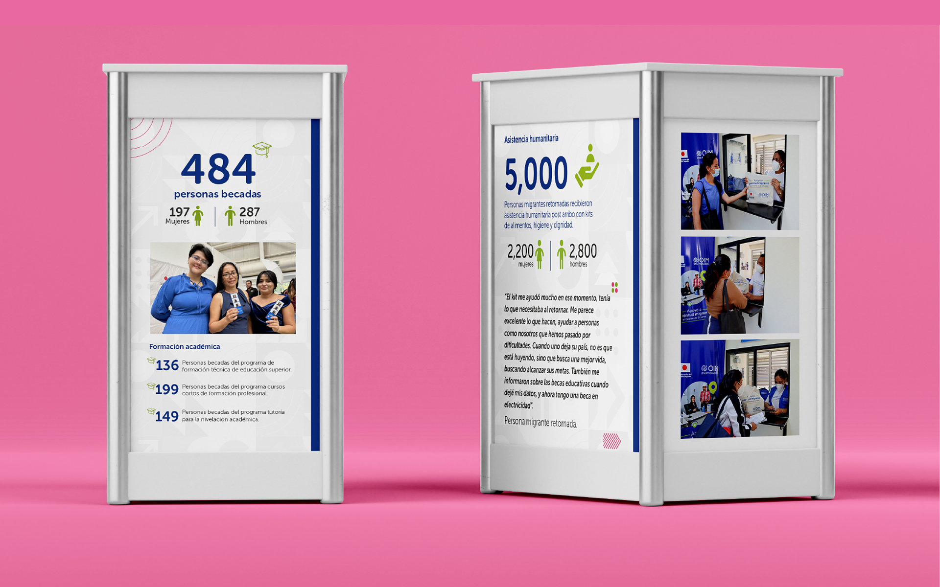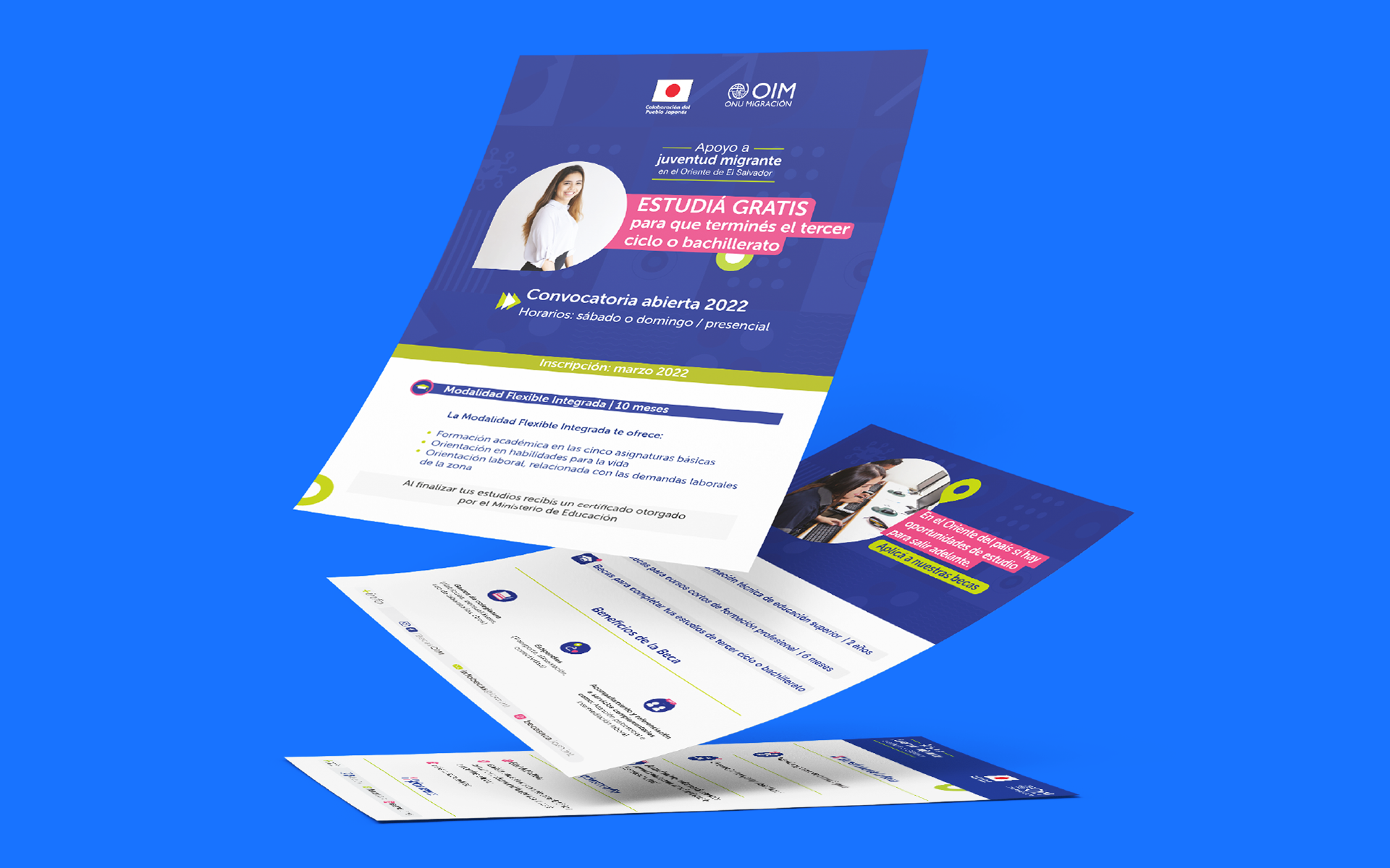 I designed the entire visual communication for a national project focused on improving the human security of returned youth and those at risk of irregular migration in eastern El Salvador, through access to quality education. I developed graphic materials for social media, the website, reports, labor market studies, success stories, mobile advertising, flyers, posters, and more—ensuring a cohesive and effective visual identity to inform, raise awareness, and promote community integration. The project benefited returned migrants and potential migrants who received humanitarian assistance, and my work was key in showcasing its impact at a national level.
